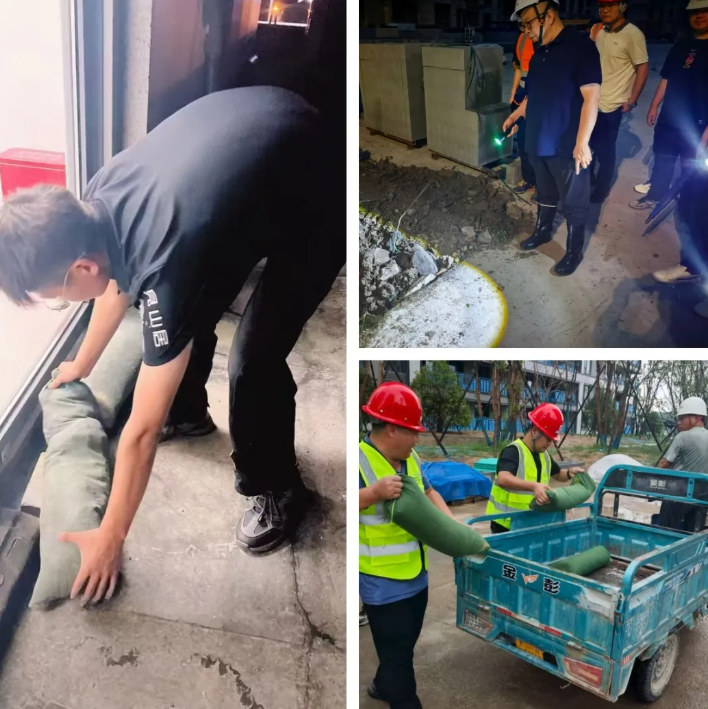 各在建項目迅速行動,按照集團要求,及時啟動項目防汛應急預案。提前放置水泵、沙袋等防汛物資,對項目臨時辦公區、生活區、施工現場作業區等重點區域開展防汛隱患排查。同時,嚴格執行24小時值班和領導帶班制度,密切監測雨情汛情,保障信息溝通渠道暢通。